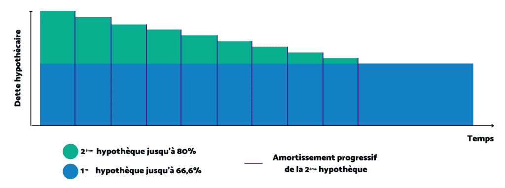L’hypothèque en deuxième rang doit être amortie en 15 ans ou au plus tard à l’âge de la retraite.